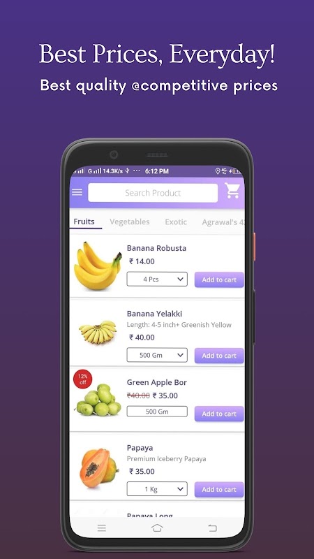 Taze sebze, meyve ve bakkaliye online sipariş için App.