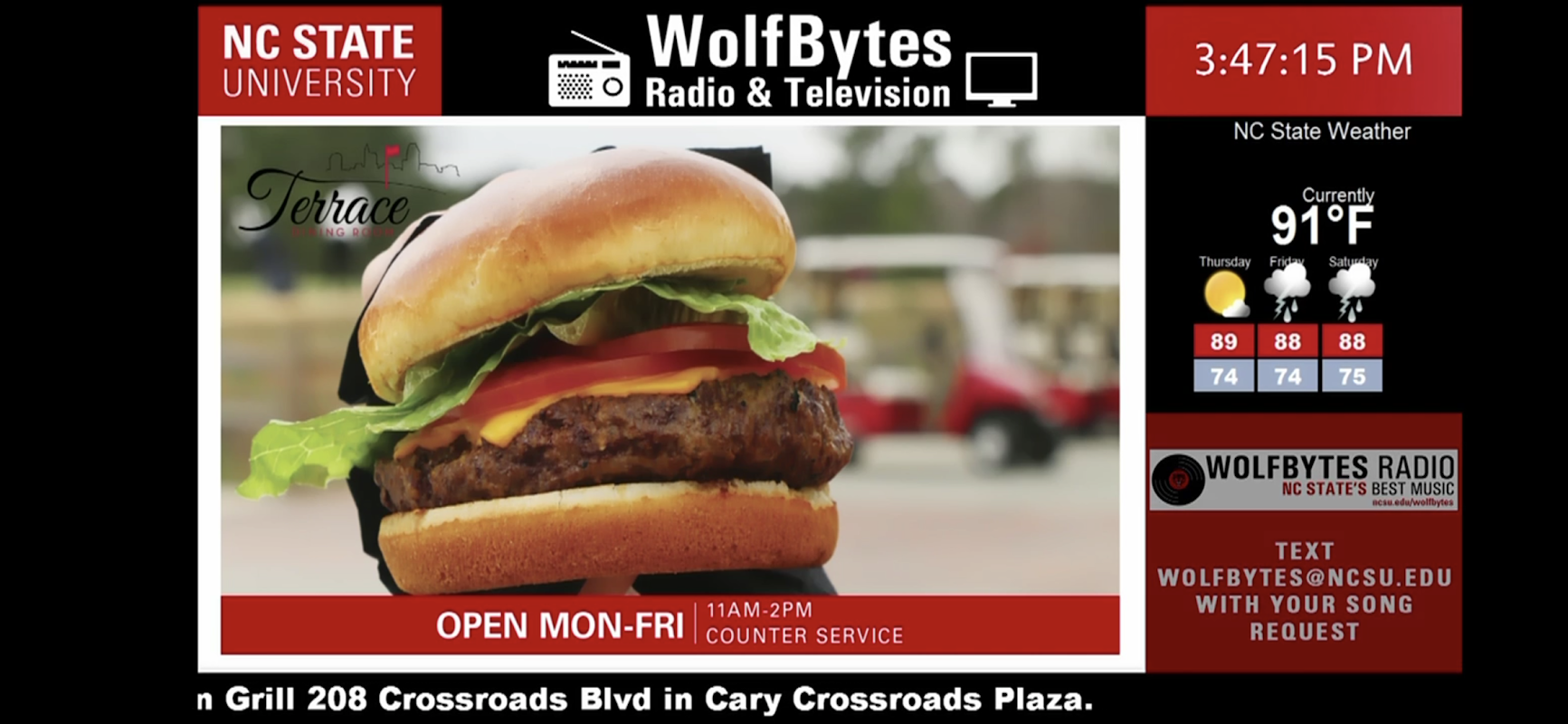 WolfBytes Television is the information station for NC State. Part of the Wolf Alert network, WolfBytes Television is the place to go for NC State news, traffic, weather and more.