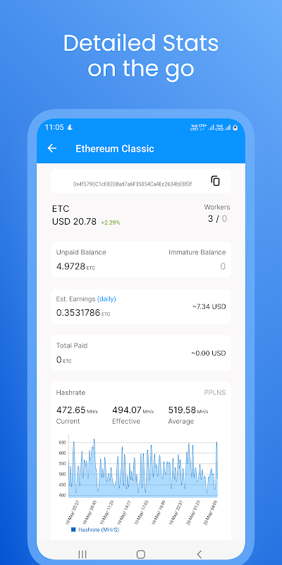 *** Bu uygulama telefonunuzu kullanarak benim olmayacak. Madencilik havuzu tarafından sağlanan istatistiklerinizi izler.***