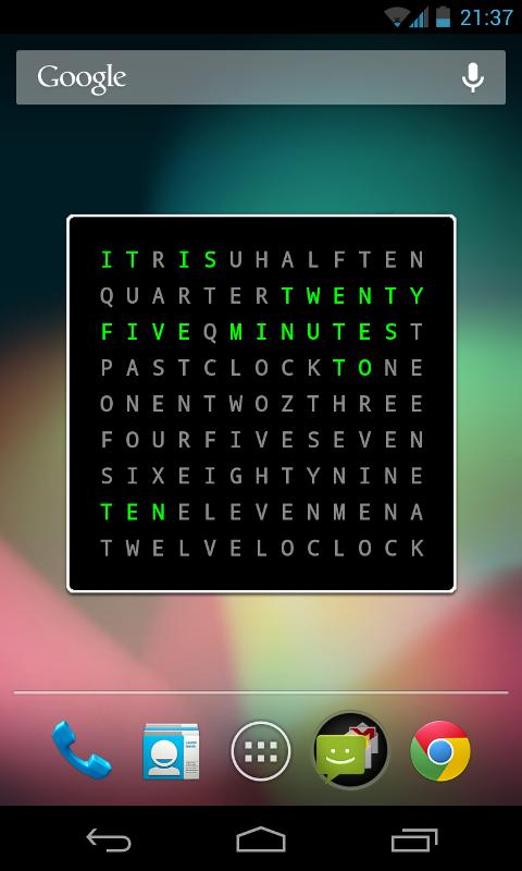 Wordclock android başlatıcısı için orijinal bir Widget saati