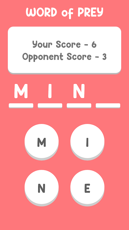 Word of Prey, her kelime için rakibinize karşı yarıştığınız kafa kafaya eşleşmeler içeren bir oyundur. Hız oyunun adıdır; bir kelimeyi doğru bulduğunuzda, siz ve rakibiniz için bir sonraki kelimeye geçer. Her kelimenin üstüne çıkması için yarışın!