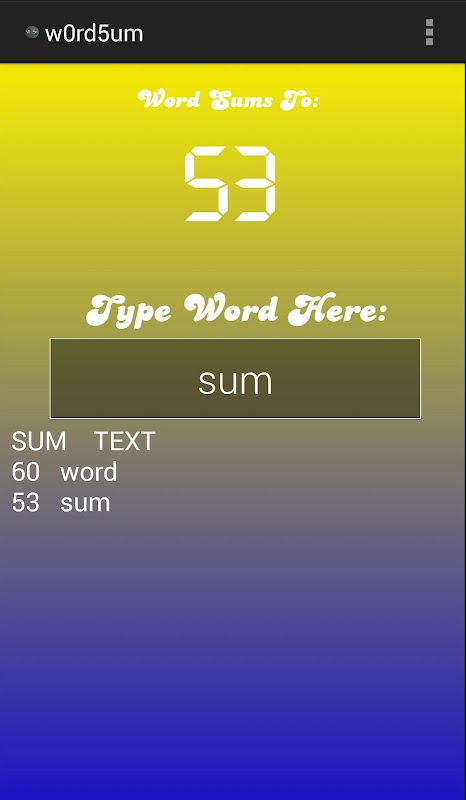 ☆ Pro Version allows you to log your word sums in the app as well as to a .CSV file!
