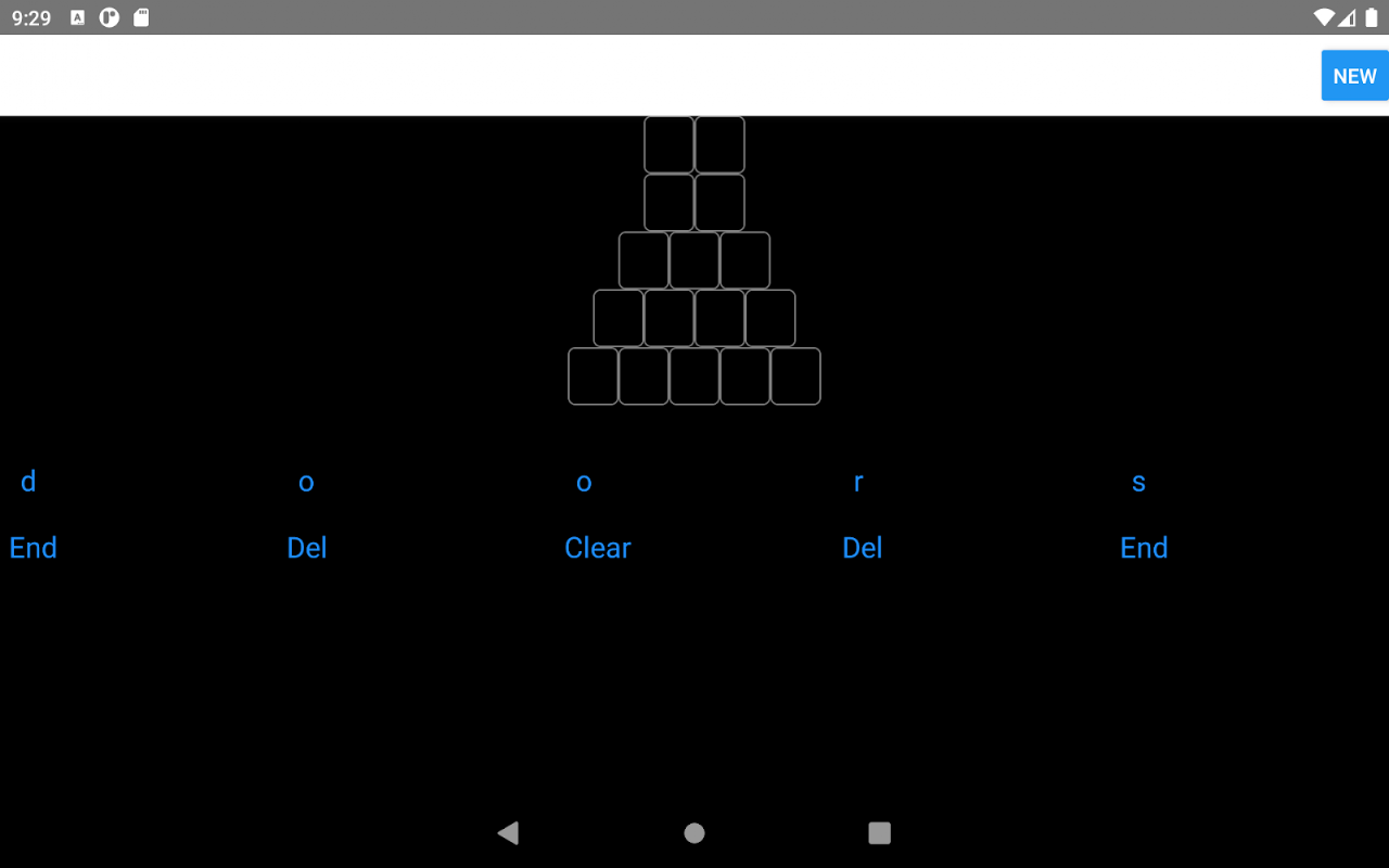 2. Input a word by tapping given letters. Use Del to delete an input, Clear to clear current input