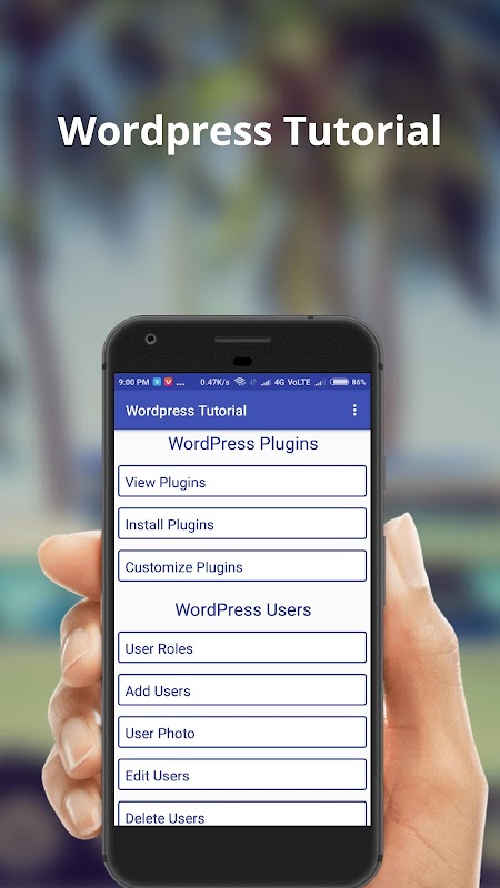 Wordpress Tutorial app collections of Categories are below and provide all this Topic Like,