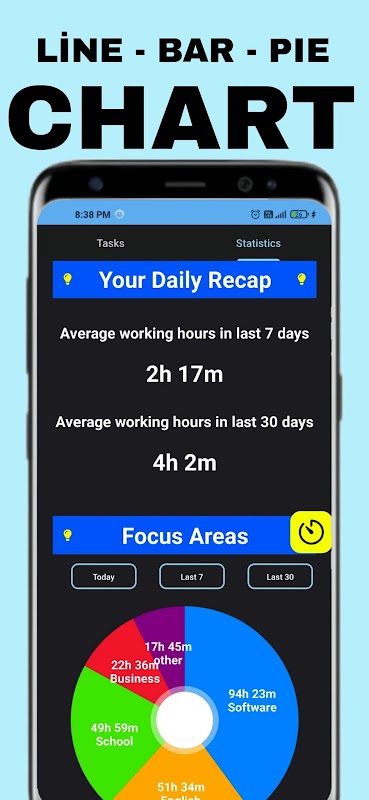 Workify ile kolayca görevler oluşturabilir ve bunlara harcadığınız dakikaları günlüğe kaydedebilirsiniz. SAT veya GRE gibi çok önemli bir sınava hazırlandığınızı hayal edin. Her çalışma oturumu için bir görev oluşturabilir ve buna ayırdığınız tam zamanı kaydedebilirsiniz. Ana ekranda toplam çalışma saatleriniz gerçek zamanlı olarak görüntülenerek üretkenliğinizi en üst düzeyde tutmanıza yardımcı olur.