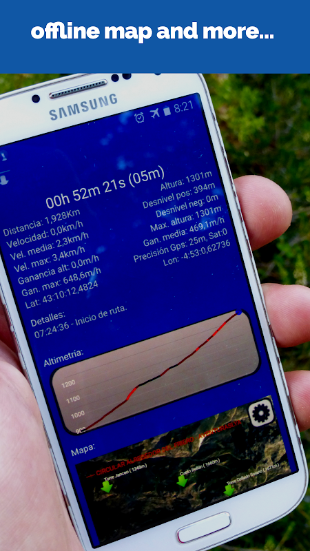 Kayıt ve mobil yollar ve ascents yayınlayın. senin çıkış istatistikleri, altimetre, rota haritaları ve çok daha fazlası izleyin. Ayrıca genişleme "Acil dön" ile kaybolmadan durumunda yeni navigasyon kullanarak rota başına dönebilirsiniz.