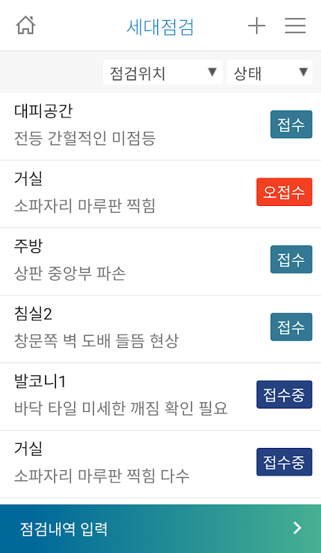 4. 세대점검 입력 및 진행사항을 조회합니다.