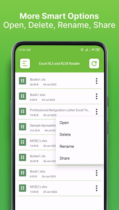 Word, excel ve ppt kullanan bir profesyonel veya Öğrenci olmak, o zaman bu xlsx okuyucu onlar içindir. Kullanıcı, akıllı telefonunun dahili belleğinde depolanan xlsx belgelerini veya hatta indirilen Xlsx biçimindeki dosyaları açabilir. XLSX hesap tablosu çok basit ve kullanımı kolaydır. XLS Dosya Görüntüleyici uygulaması, bu dosya açıcı uygulaması aracılığıyla görev listesini, çizelgeleri, bütçe listesini yönetmek için çizelgeler ve elektronik tablolar oluşturmayı destekler. Xlsx Dosya okuyucu ve görüntüleyici ücretsiz ve hafif bir uygulamadır. Bu Xls ve xlsx formatındaki dosyalara kolayca erişebilirsiniz.