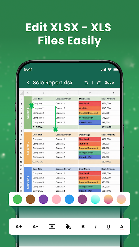 Raporları kontrol ediyor, ödevleri düzenliyor veya hareket halindeyken iş verilerini yönetiyor olun, XLSX Reader - XLS Editor, bilgisayara ihtiyaç duymadan elektronik tabloları yönetmenin basit ve güvenilir bir yolunu sunar.