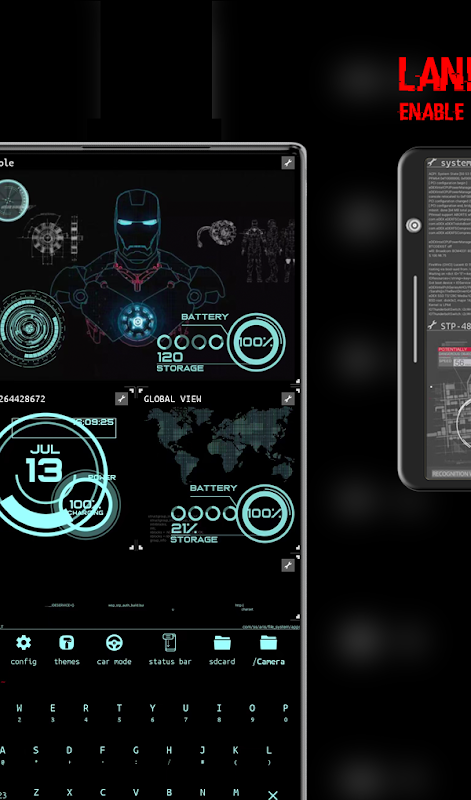 Harika terminal benzeri kullanıcı arayüzü ile hacker hayatını deneyimlemenin yanı sıra, ana ekranda basitçe yukarı kaydırarak App Drawer ile normal bir Başlatıcı olarak da kullanabilirsiniz.