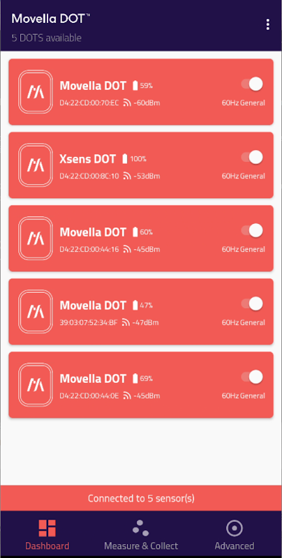 Movella DOT uygulaması, Movella DOT giyilebilir sensörlerini telefonunuzdan kontrol etmenizi sağlar. Movella DOT, insan kinematiğinin analizi ve raporlanması için giyilebilir bir sensör geliştirme platformudur.