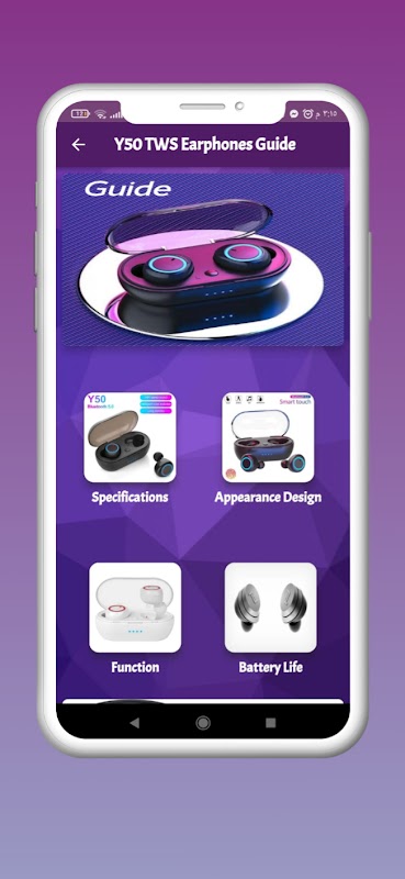 The application Y50 TWS Earphones Guide provides you with many information for Y50 TWS Earphones Guide