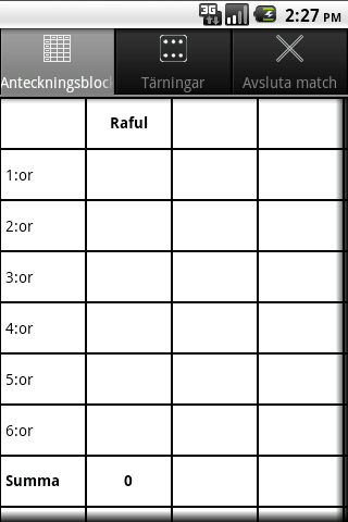 The popular game Yahtzee in mobile format, entirely in Swedish.