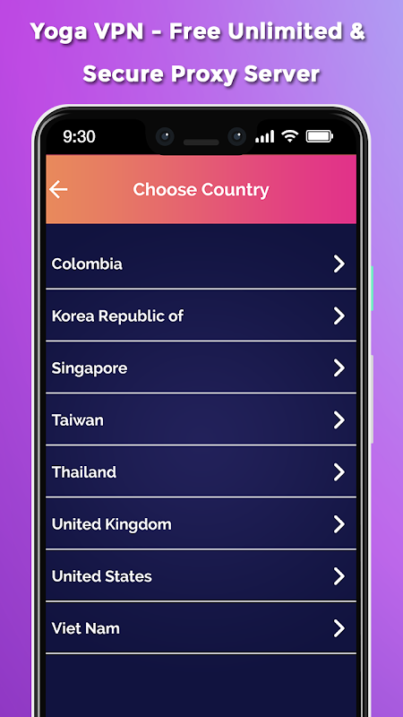 Yoga VPN - Free Unlimited And Secure Proxy app with you just needs to tap on the start button to download country list and tap on your choice country area and to access any blocked site to unblock it.