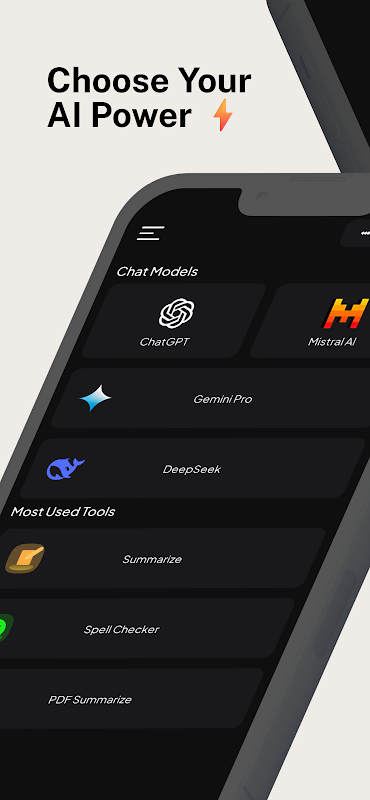 Daha hızlı düşünmenize, daha iyi yazmanıza ve daha akıllıca öğrenmenize yardımcı olan hepsi bir arada yapay zeka dostunuz ZapAI ile tanışın. Anında yanıtlar alın, belgeleri özetleyin, dilbilgisini düzeltin ve saniyeler içinde fikir alışverişinde bulunun. ZapAI'yi diğerlerinden ayıran şey, gerçek çoklu model özgürlüğüdür. OpenAI ChatGPT‑5, Gemini, Mistral, DeepSeek ve diğerleri gibi önde gelen yapay zeka modelleri arasında geçiş yapabilirsiniz, böylece her görev kendisine en uygun modeli alır.