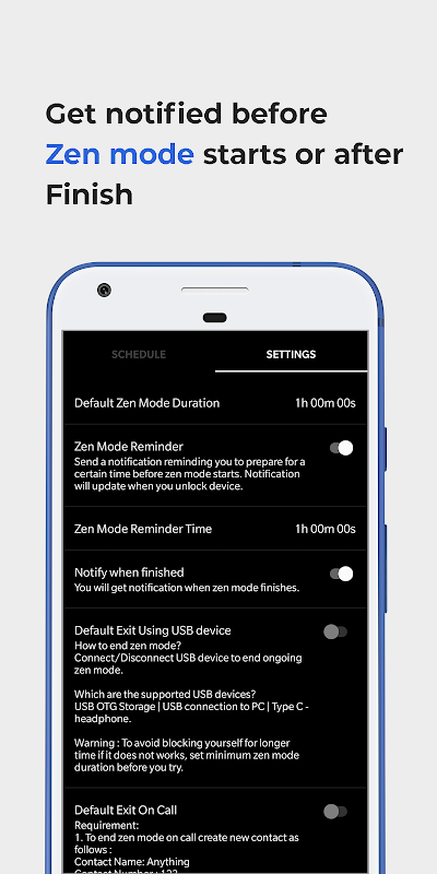✪ Zen modu başlamadan veya bittikten sonra bildirim alın