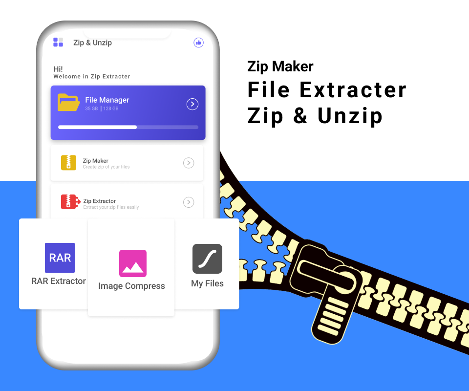 👉Android için Zip Dosyası çıkarıcı - Zip dosyası sıkıştırıcı, bir veya daha fazla dosyayı birlikte tek bir zip dosyasına sıkıştırmak için kullanılır. Zip açıcı - zip rar Dosya sıkıştırıcı, dosya boyutunu küçültmenize yardımcı olur ve kaydetmeyi ve herkesle paylaşmayı kolaylaştırır.