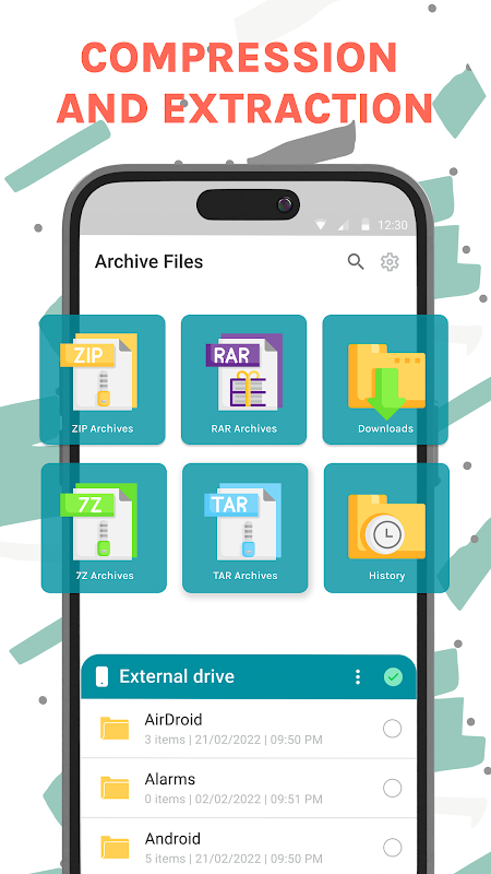 RAR, ZIP çıkarıcı uygulamamızla bir arşivi güvenli hale getirmek kolaydır. Android için ZIP, RAR, Iso dosya çıkarıcı, önemli ve gizli dosyalara onları yetkisiz erişime karşı koruyan bir parola atayabilir.
