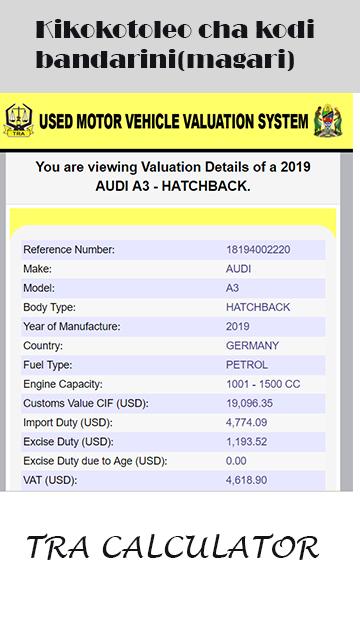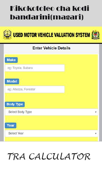 Official App ya TRA ya kujua bei yako utapoagiza gari lako ebuka usumbufu Jua bei yako mapema kabla haujataka kuagiza gari lako epuka usumbufu