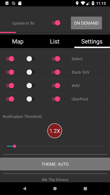 - Keep you informed the highest surge and the surge nearby via push notifications