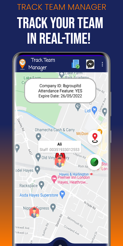 Workforce Tracking Solution - Your staff must download "Track Team Staff" app.