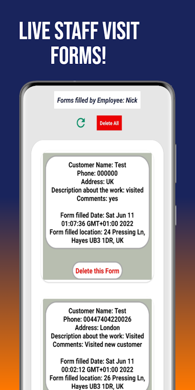• Job/Visit forms in Real-Time, Staff can fill the sales visit forms in realtime and manager can see it within app