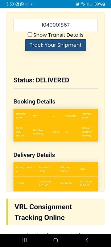 A VRL Logistics Tracking application