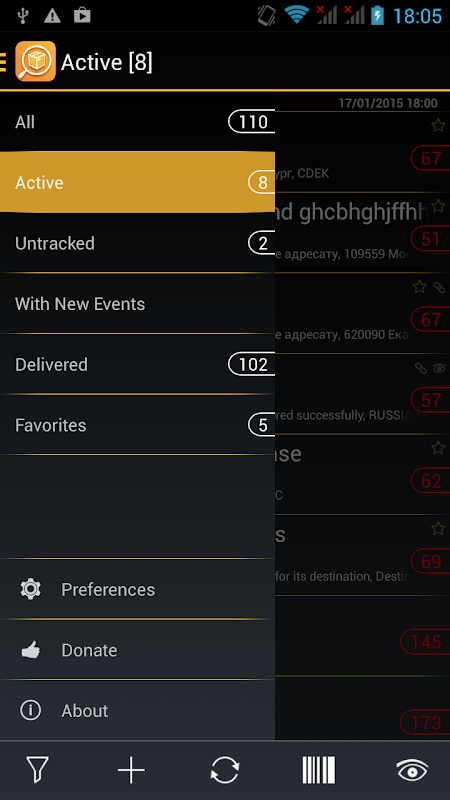 In TrackChecker Mobile you can track an unlimited number of parcels and receive notifications of new events.