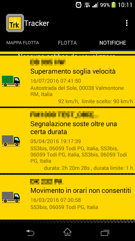 - more information in the fleet list and notifications archive: now the address is always available both in the fleet list and in the notifications even if you are not viewing the single vehicle on the map