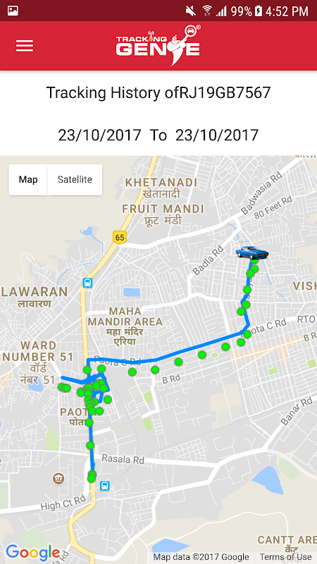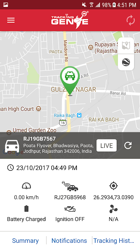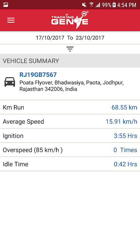 This app provides a way for existing Tracking Genie customers to keep track of their vehicle using an android device. This app lets TrackingGenie users view the current location and speed of all their vehicles. Using this app TrackingGenie customers can view Summary Reports, Geo Fence and Over speeding Notifications along with Tracking History of any of their vehicles.