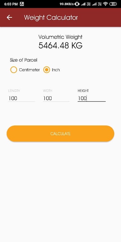 • Volumetric Weight calculator