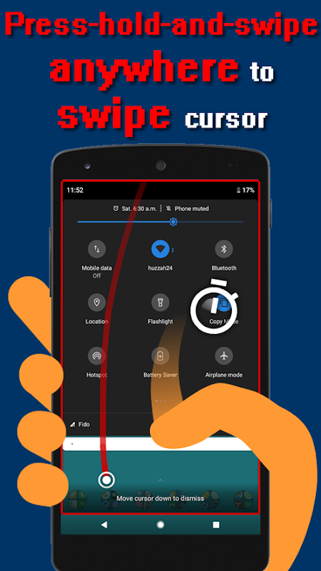 Use a computer-like mouse/cursor/pointer to control your big phone with one hand.