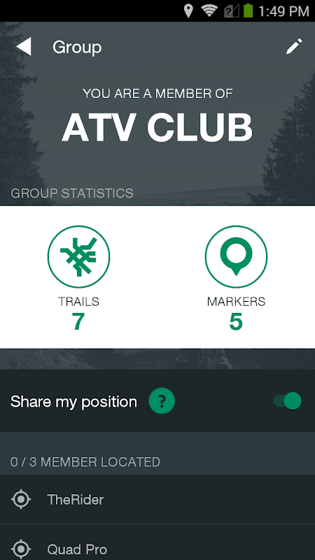 - While riding, use the TrailTracker app to see both your personal map and your group’s map.