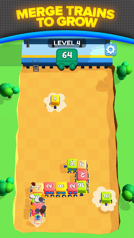 Collect and merge similar numbers to reach your goal. Careful the more numbers you collect, the longer your train will be. Avoid colliding with obstacles. Gather people to earn more points!!!