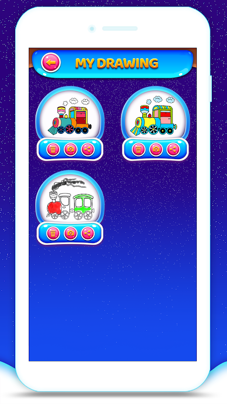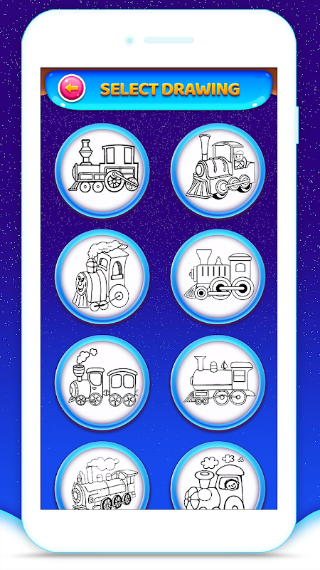 TRAIN COLORING BOOK & DRAWING GAME FEATURES: