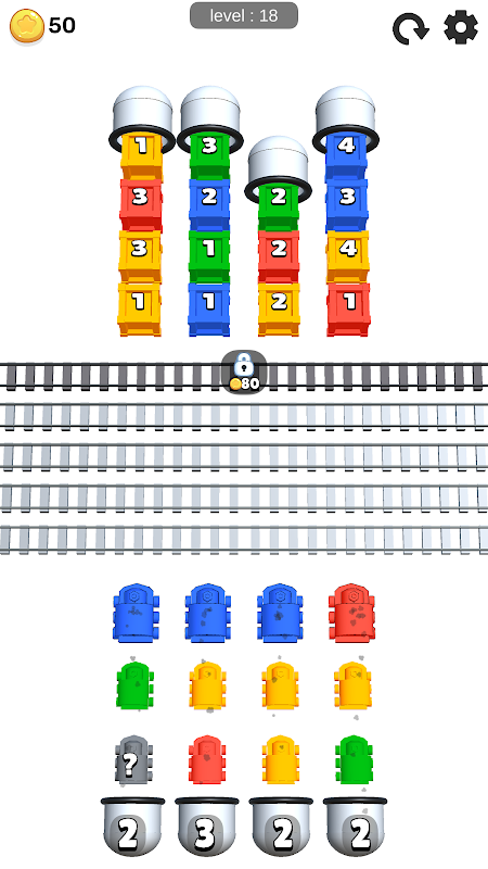 - Tap on a train from the front row to move to an empty train track in the middle.