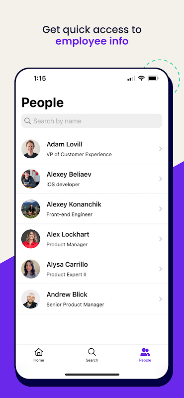 - Quickly access team member contact info.