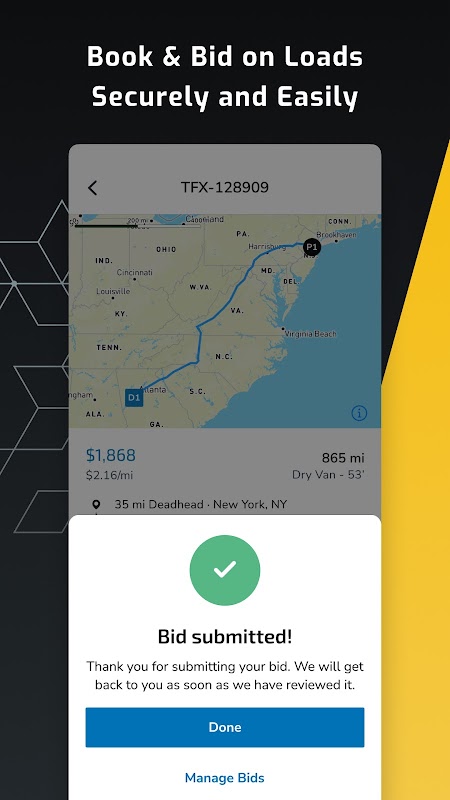- Use your personalized Dashboard to manage bids, book loads, assign drivers, and upload documents