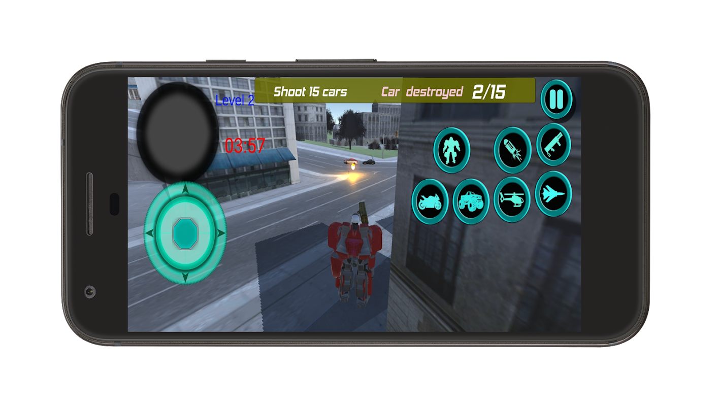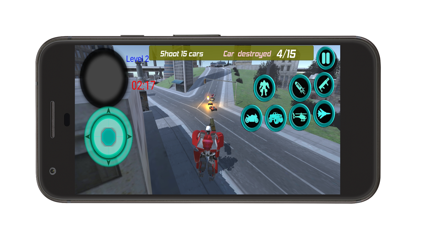 "Transformers" is an exhilarating offline mobile game where players assume the role of a transformer hero capable of morphing into various war vehicles and motorcycles. With each level, players are thrust into dynamic battlegrounds, facing new challenges and objectives to conquer. From bustling cityscapes to desolate wastelands, the game offers diverse environments for players to navigate and dominate. As players progress, they unlock new abilities and upgrades, enhancing their transformer's power and versatility in combat. With intuitive controls and stunning graphics, every battle feels immersive and intense, keeping players on the edge of their seats. Whether transforming into a tank to unleash devastating firepower or zipping through enemy lines on a sleek motorcycle, the game offers endless excitement and adrenaline-fueled action. Each level completed brings a sense of accomplishment, prompting players to eagerly advance to the next stage, where even greater challenges await. With its captivating gameplay and endless replay value, "Transformers" stands as a testament to the enduring appeal of the iconic franchise. Get ready to join the battle and prove your mettle as the ultimate transformer hero!