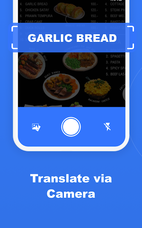 Just point your camera at menus, road signs, books, or documents to translate text automatically.