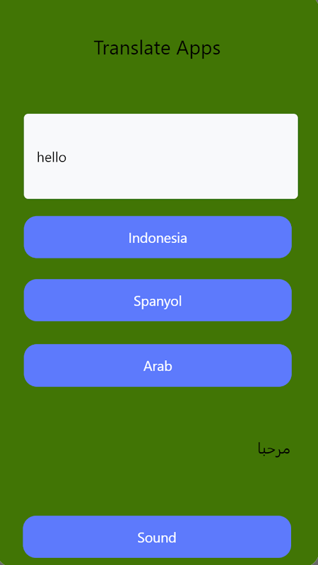 This app is used to translate English to a 3 different language, it includes: Indonesia, Italy, and Spaniol, and there is a feature sound to help people understand the pronunciation.