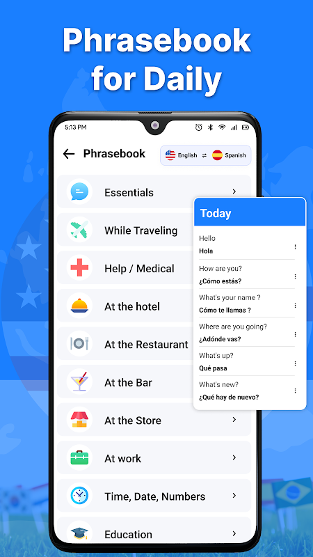 Listen and learn the correct pronunciation of words in different languages. Improve your speaking skills with the language translator app.