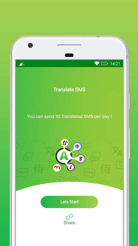 Upgrade to the PRO version ( https://play.google.com/store/apps/details?id=in.codersunlimited.translatesmspro ) to remove ads, share translation to other compatible apps and no limits to translation.
