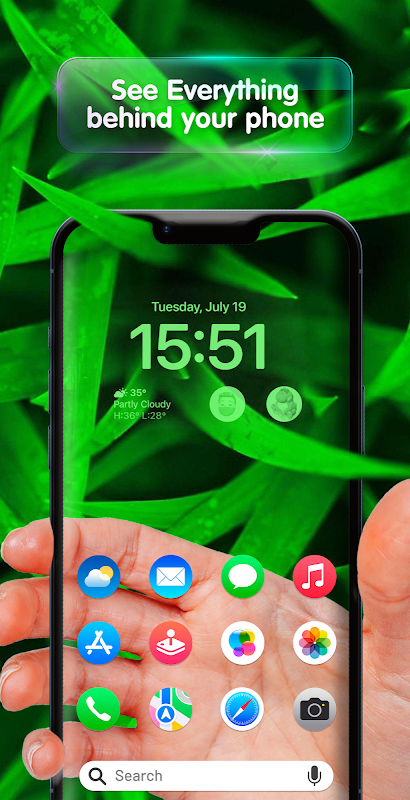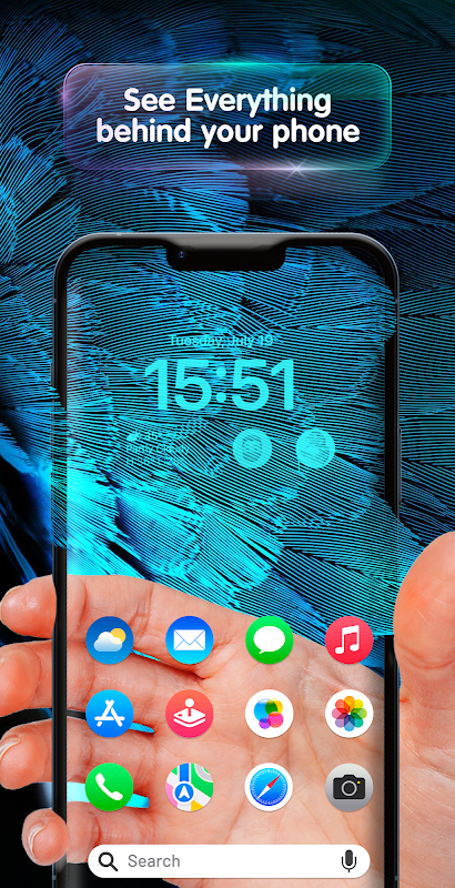 Try out this great combo of camera and wallpaper, it allows you to make the screen transparent by using phone camera! So make your smartphone screen transparent with this Transparent Camera Screen.