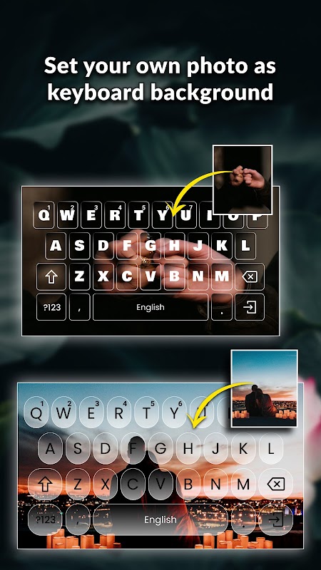 • Choose background colors or set your own images as the keyboard background.