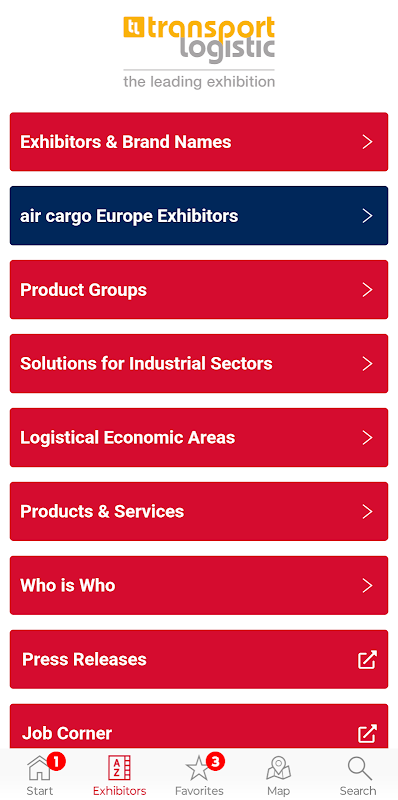 The transport logistic app gives you access to all important fair-related information at all times. Thanks to exhibitor lists, interactive hall plans, the entire program and other useful functions, the transport logistic app is an indispensable companion for your trade fair visit.