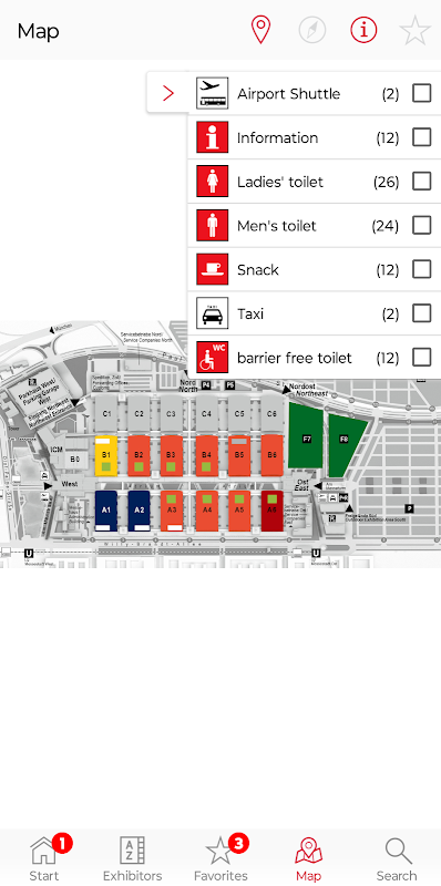 • List of exhibitors with favorites function