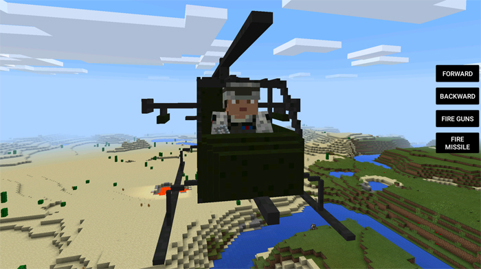 The helicopter is armed with one machine gun and a missile launcher. The rotating helicopter blades alongside the amazing sound effects make the experience quite realistic. It is a really powerful airborne fighting vehicle effecient for battles against zombies, creepers and other monsters.
