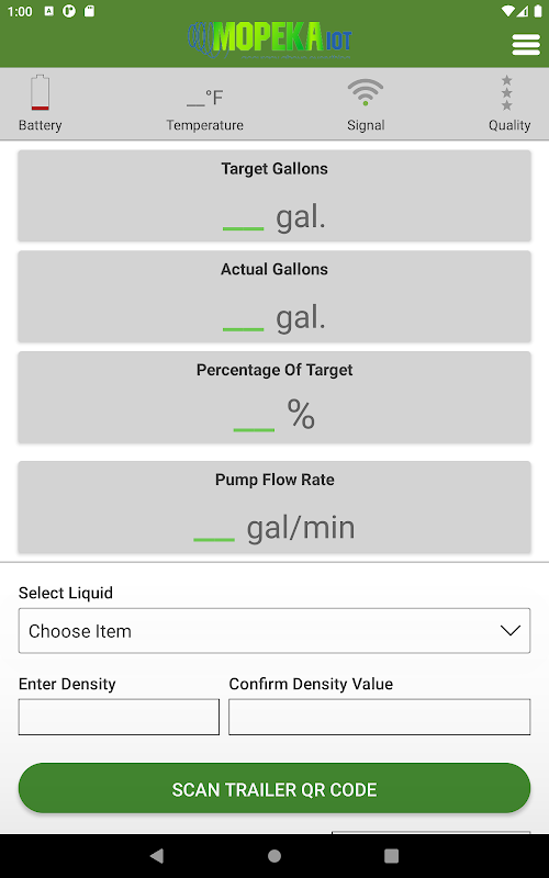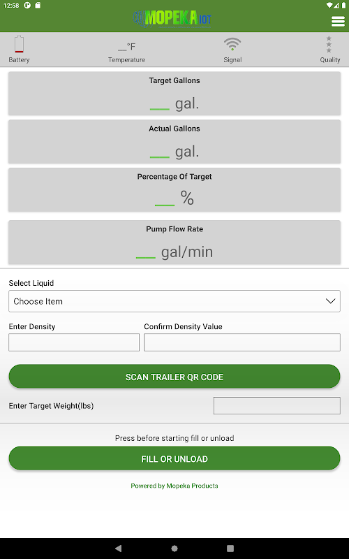 MopekaIOT Transport App is designed to be used with the Mopeka Patented line of Sonar Sensors for Transports and Bobtails. The MopekaIOT Transport application can measure the volume and usage of both pressurized and non-pressurized liquids to tell you the current tank liquid volume in real-time, anytime. You simply scan your truck’s QR Code, which details the compliance and capacity limits, and the connected sonar sensor then links with your Smart Device via Bluetooth. The App details all the key measurements for your truck and gives you real-time data on capacity, temperature, and flow. Whether Propane, Butane, Oil, Anhydrous, Water or any other liquid can be measured using our transport sensors when paired with the MopekaIOT Transport App.