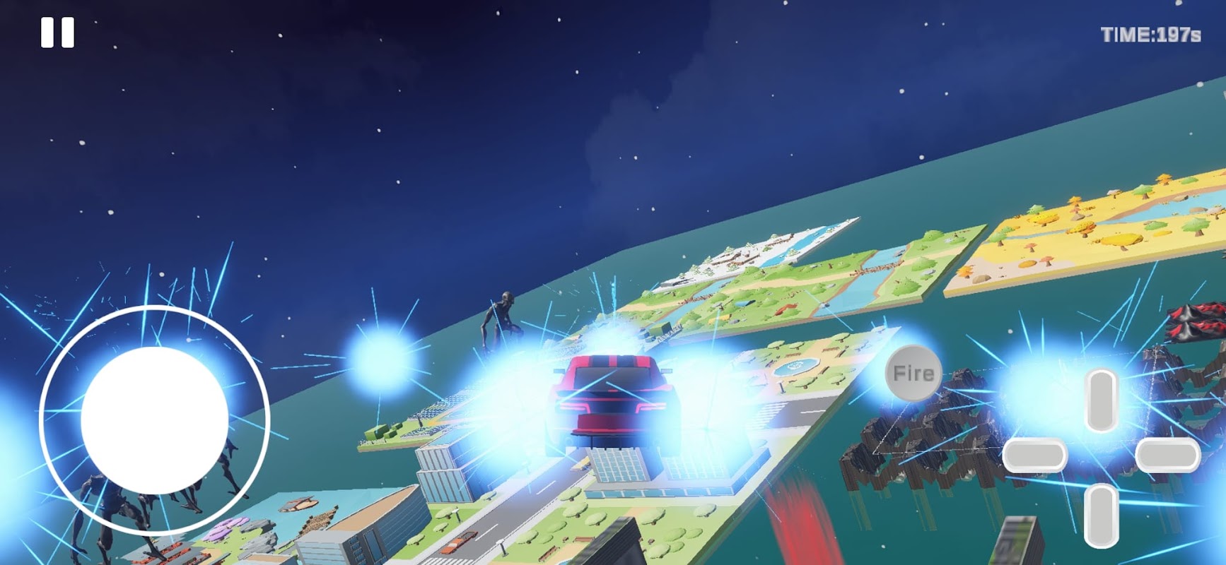 Get rid of the aliens first and destroy the zombies that start attacking you with a flying and shooting car. Read the map carefully and act accordingly.The game continues in a completely endless loop. If you don't beat the game within the allotted number of seconds, you have to start over. First, you must go to the weapon point and grab the weapon to get rid of the aliens. Then, you must destroy the aliens and open fire on the zombies that are approaching you. You also have complete freedom on the map and can fly your car wherever you want.